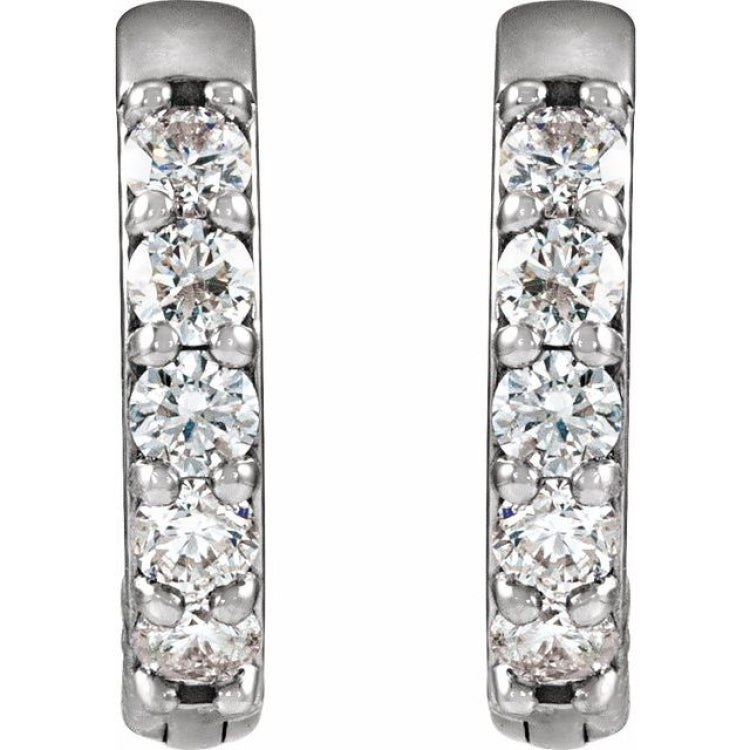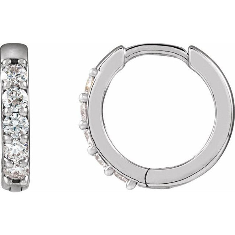 14K White Gold 1/4 CTW Lab-Grown Diamond Hinged 12.5 mm Hoop Earrings