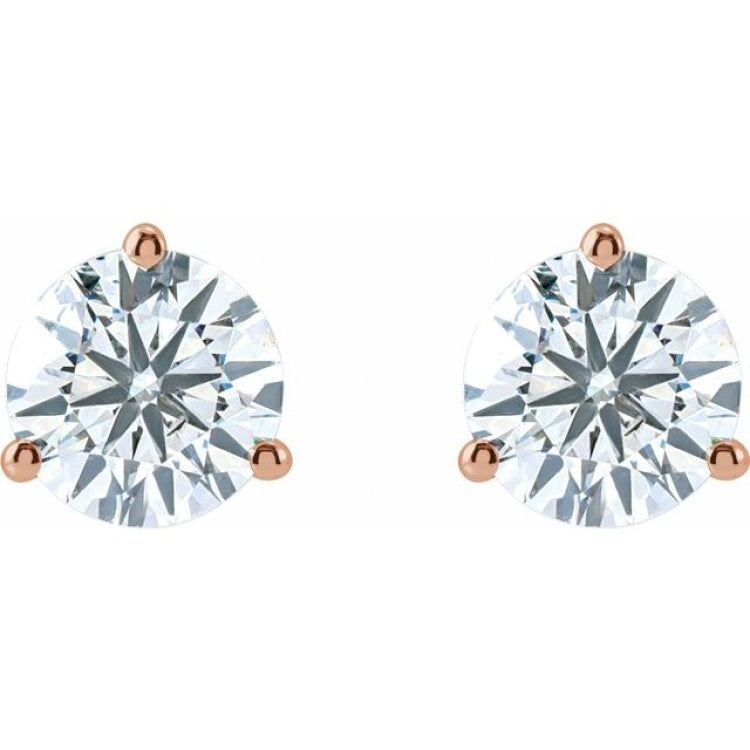 66233 / 14K Rose Gold / Set / Round / Lab-Grown Diamond / Pair / 5.75Mm :: 1 5/8 Ctw / Vs, F+ / Friction / Friction Backs Included / 3-Prong / Polished / 1 5/8 Ctw Lab-Grown Diamond Stud Earrings