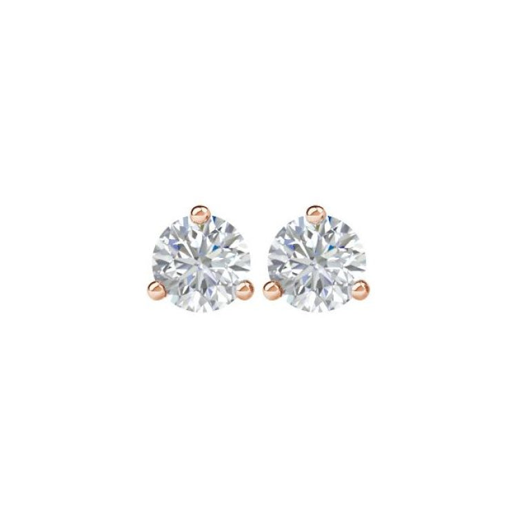 66233 / 14K Rose Gold / Set / Round / Natural Diamond / Pair / 5Mm :: 1 Ctw / Si2-Si3, G-H / Friction / Friction Backs Included / 3-Prong / Polished / 1 Ctw Natural Diamond Stud Earrings