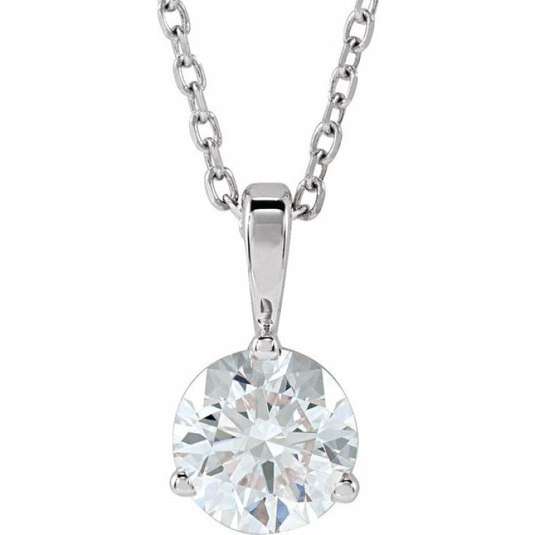 23559 / Necklace / Set / 14K White Gold / Round / Lab-Grown Diamond / 6Mm :: 3/4 Ct / Si1-Si2, G-H / 18 In / Polished / 3/4 Ct Lab-Grown Diamond Solitaire 3-Prong Necklace