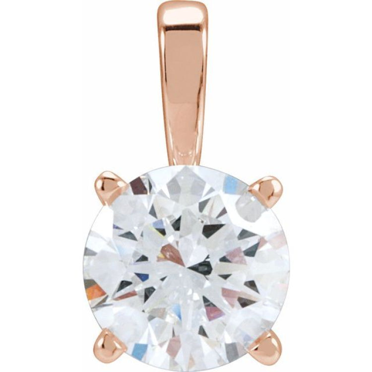 28392 / Pendant / Set / 14K Rose Gold / Round / Natural Diamond / 7.9Mm :: 2 Ct / I1, G-H / Polished / 2 Ct Natural Diamond Solitaire 4-Prong Pendant